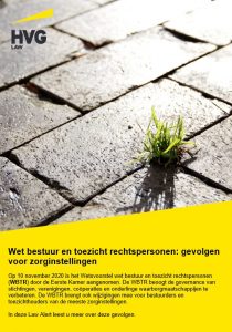 Op 10 november 2020 is het Wetsvoorstel wet bestuur en toezicht rechtspersonen (WBTR) door de Eerste Kamer aangenomen. De WBTR beoogt de governance van stichtingen, verenigingen, coöperaties en onderlinge waarborgmaatschappijen te verbeteren. De WBTR brengt ook wijzigingen mee voor bestuurders en toezichthouders van de meeste zorginstellingen.